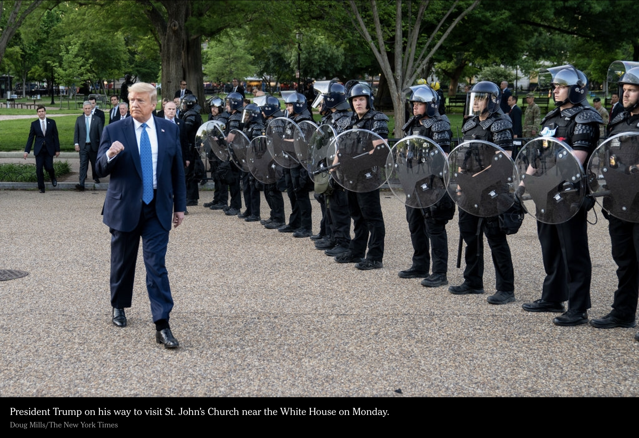 NY Times Photo of Trump and his black shirted police escort to church