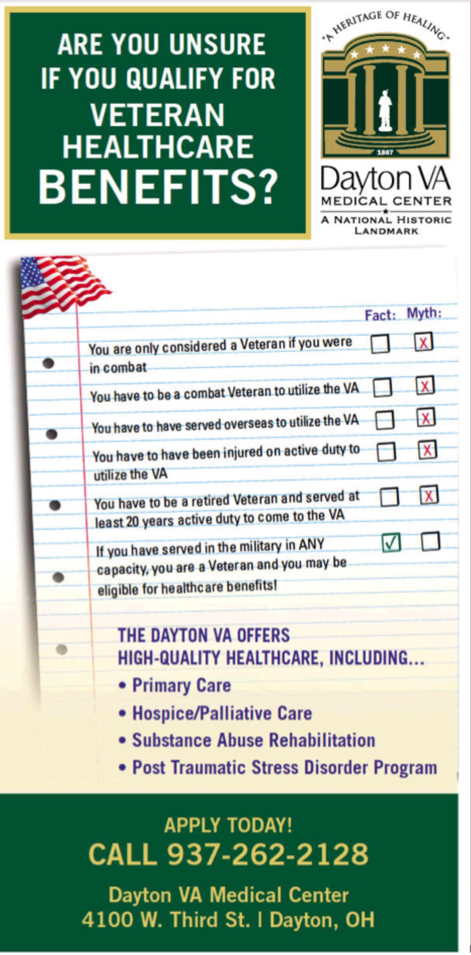 Dayton VA ad promoting access- by pointing out myths of eligibility