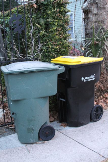 In Dayton Ohio we give out a little bin for recycling but a 90 gallon for trash. In Savannah- they give out equal sized bins.
