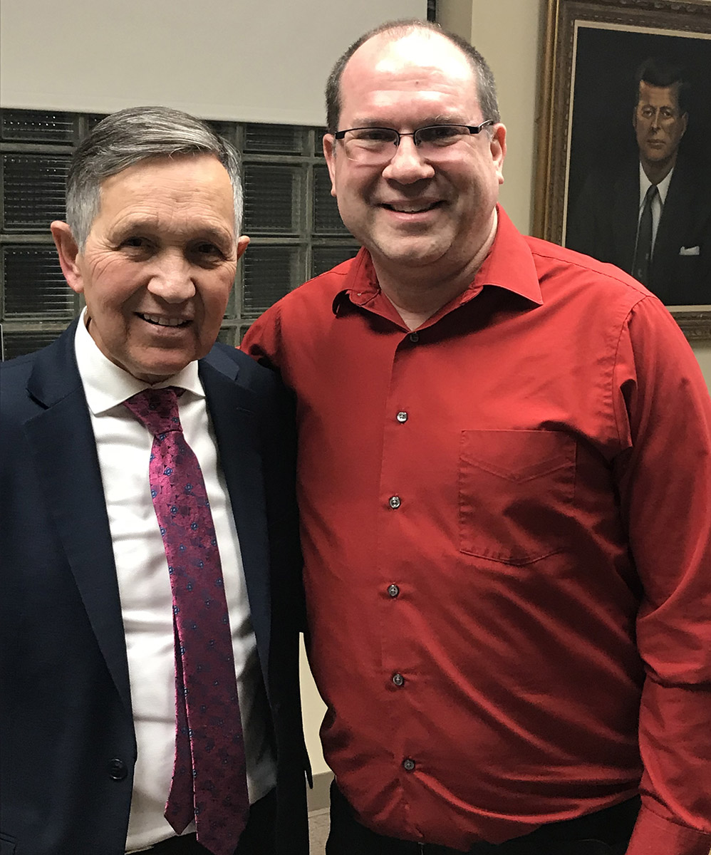 Dennis Kucinich with community activist David Esrati in Dayton Ohio January 25, 2018 in the Montgomery County Democratic Party leaders office