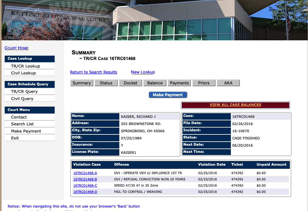 Richard J Kaiser, founder of Wilderness Agency DUI in Kettering Court. Case 16TRC001468