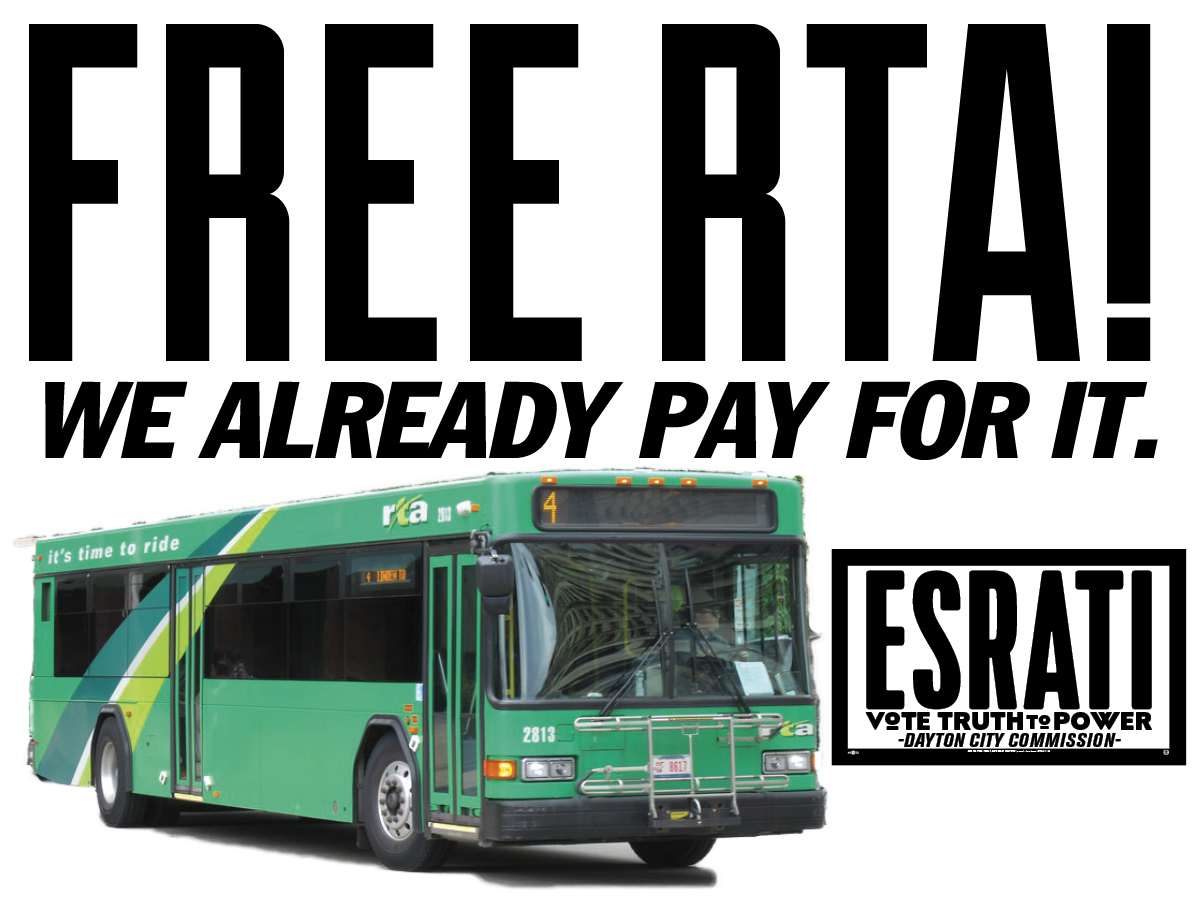 Graphic for the proposal by David Esrati for Dayton City Commission to make RTA free