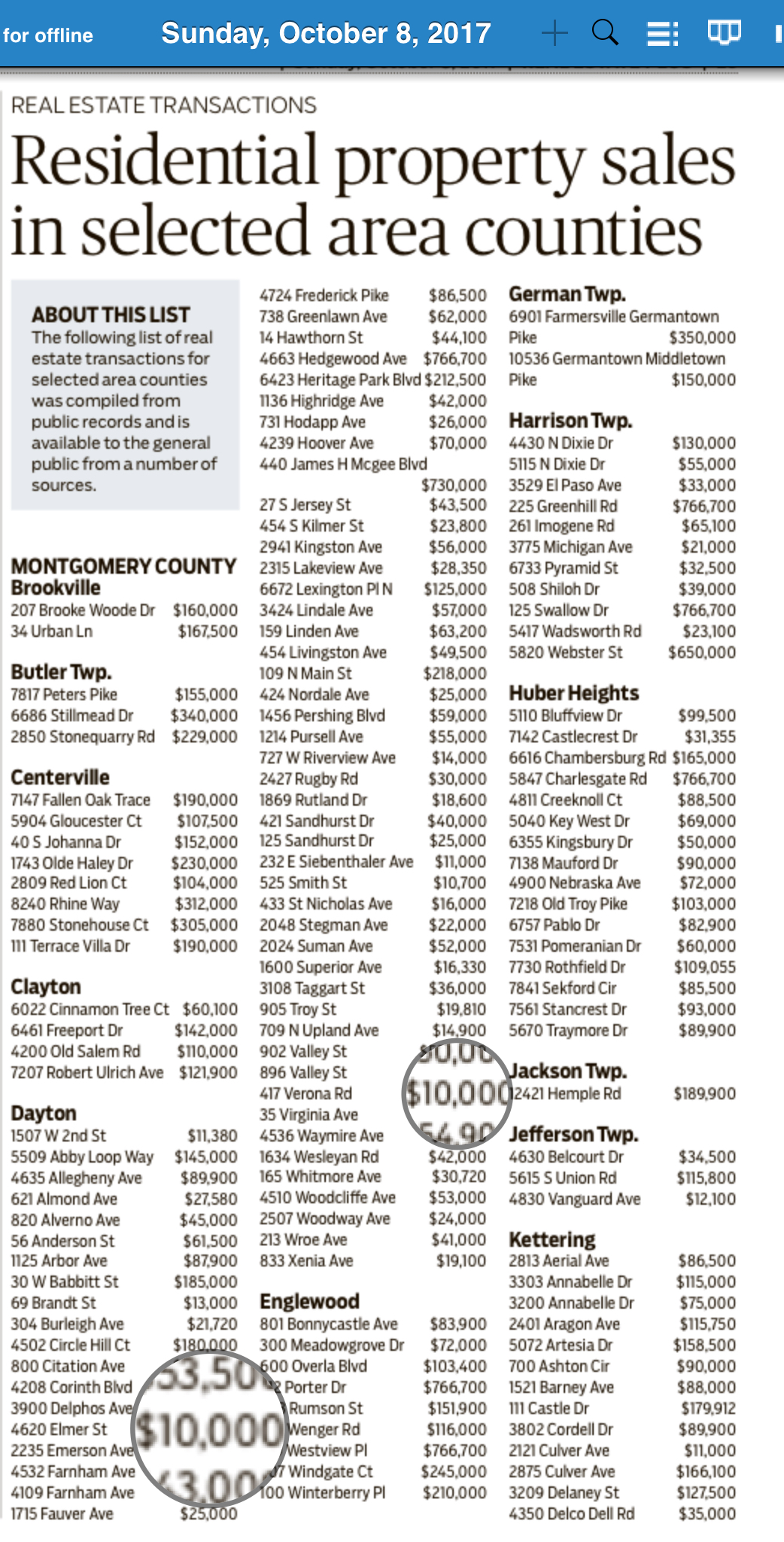 You can buy a house in Dayton for $10K- but, the value will be set by the government for tax purposes