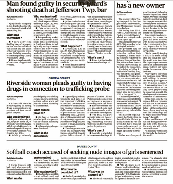 If you read the Dayton Daily news only in print or the E-edition you are getting 2 day old news these days. That’s because they are printing the paper in Knoxville TN now, after first trying Indianapolis and then Detroit. The deadlines and the drive time- put the paper into a time warp. But, you can get their emails, and links to most of the stories a day early. So by the time the “print” edition shows up the only mysteries are the obits, the classifieds and what NY Times articles they’ve selected for you.
