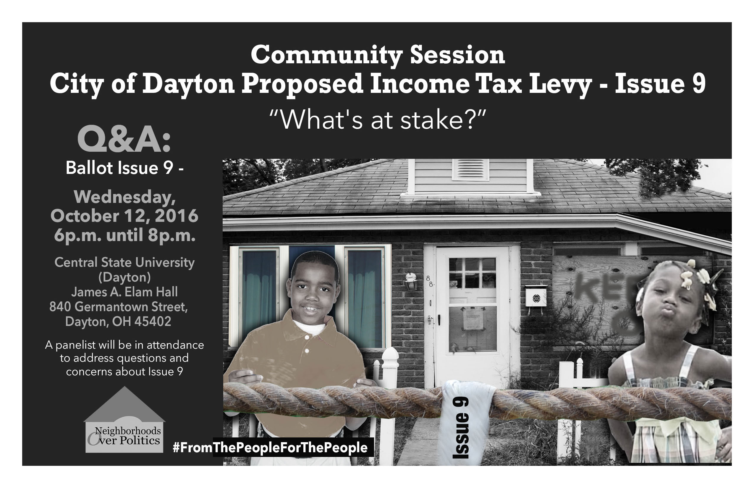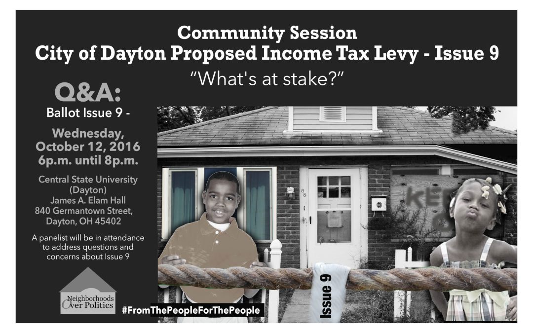 Dayton issue 9 info session flyer by Neighborhoods over Politics