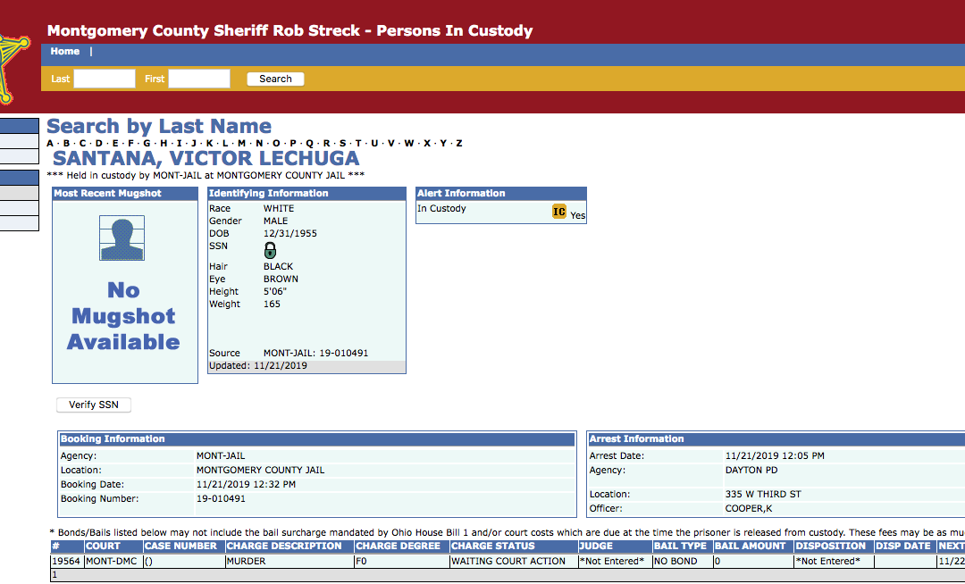 Jail record for victor santana, shooter of teens in garage in Dayton Ohio