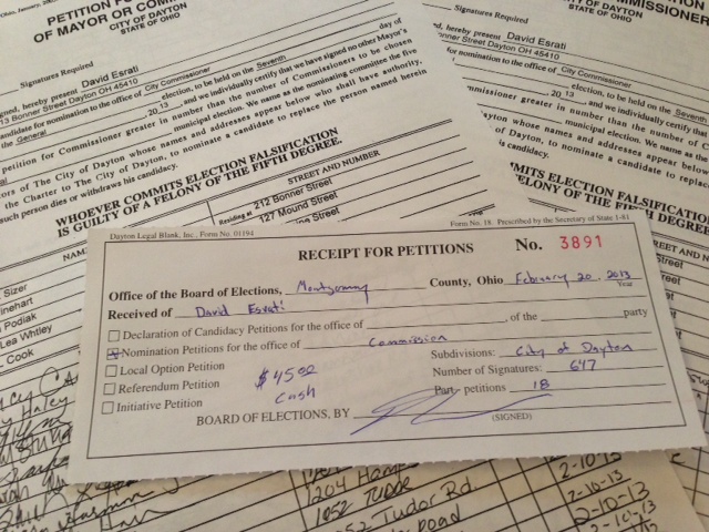 It takes 500 “good” signatures to get on the Dayton City Commission ballot. These have to be collected in the coldest months of the year. The form is flawed, it requires more steps than any other petition- and 10x the number of signatures that you need to run for Congress.