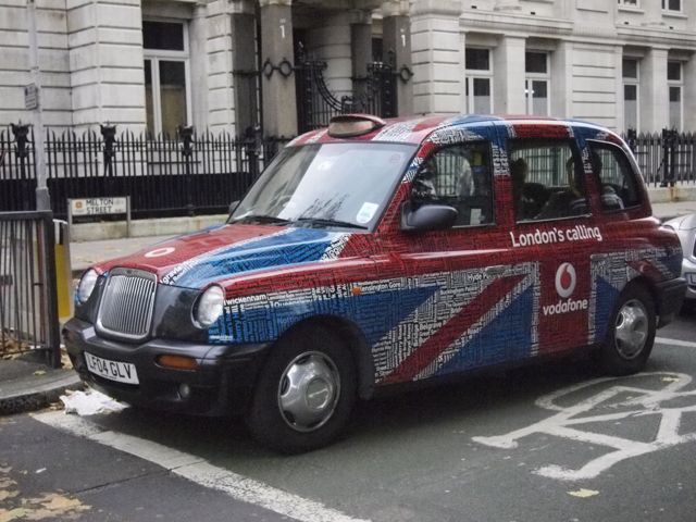 London Calling Taxi Wrap for vodaphone in London photographed by David Esrati, London 2011