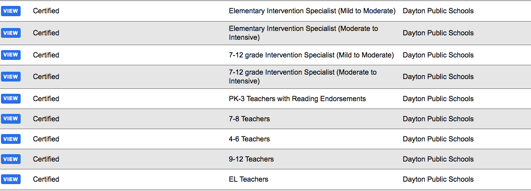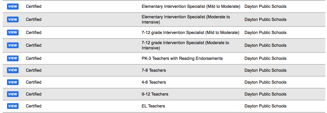 Screenshot of job postings for Dayton Public School teachers on Dayton Education Consortium site