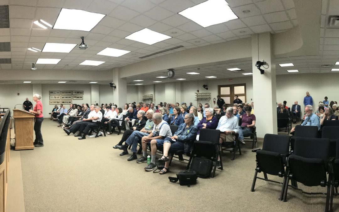 Panoramic photo of the Packed Dayton City Commission Meeting where Nan Whaley was AWOL
