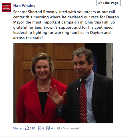 Nan Whaley with Sherrod Brown in a FB ad