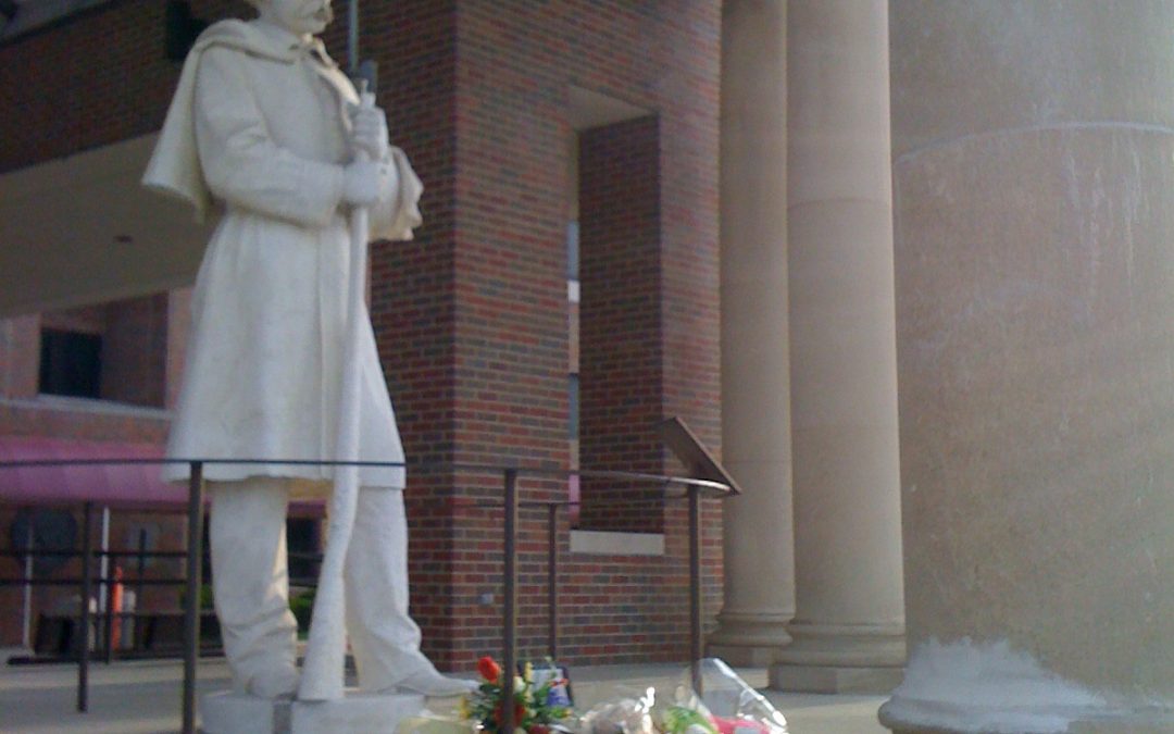 Photo taken early on Tuesday April 20 2010, at the Dayton VA- near where US Army Veteran Jesse Huff took his own life. A makeshift memorial to this trooper has been set. Photo by David Esrati