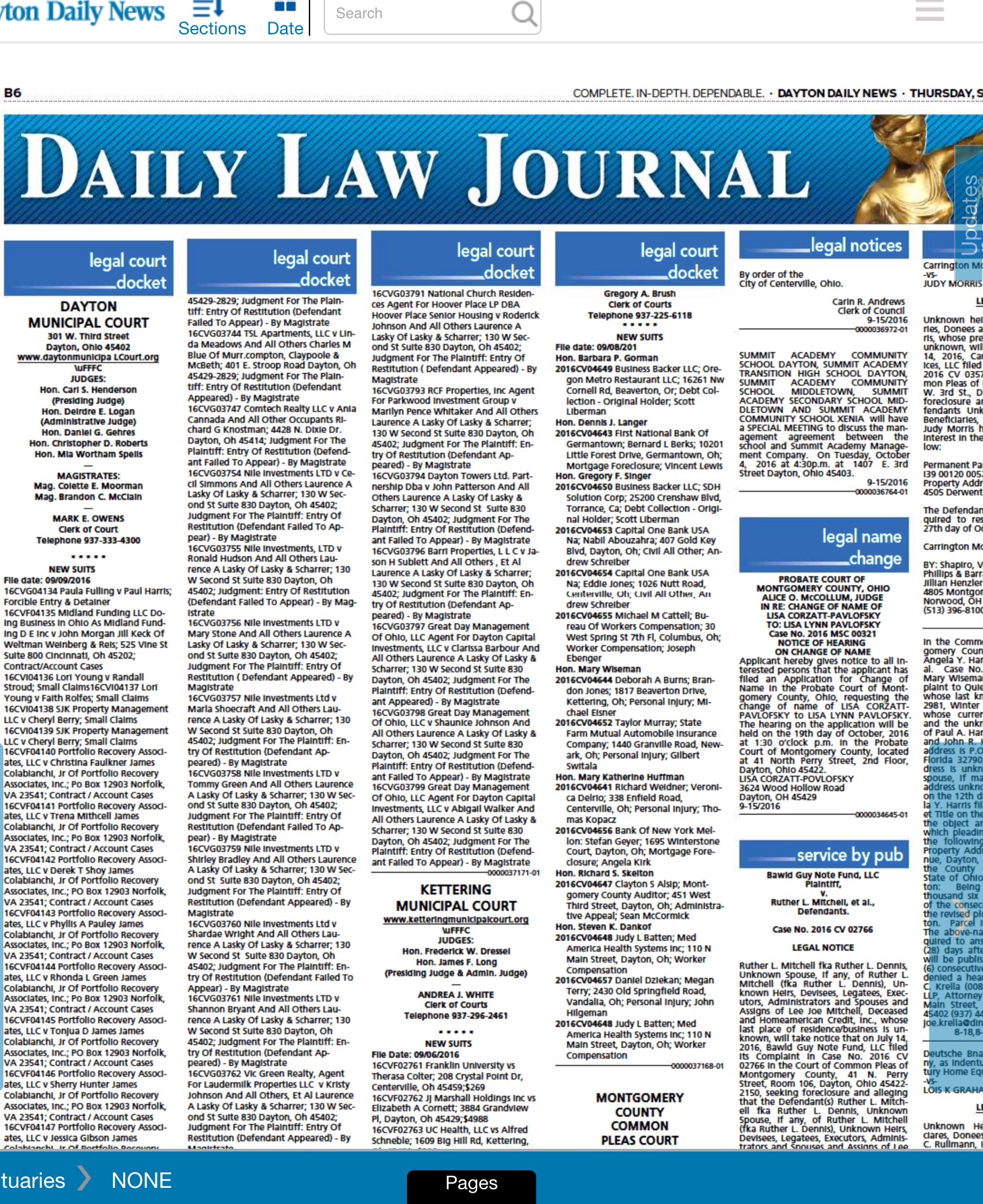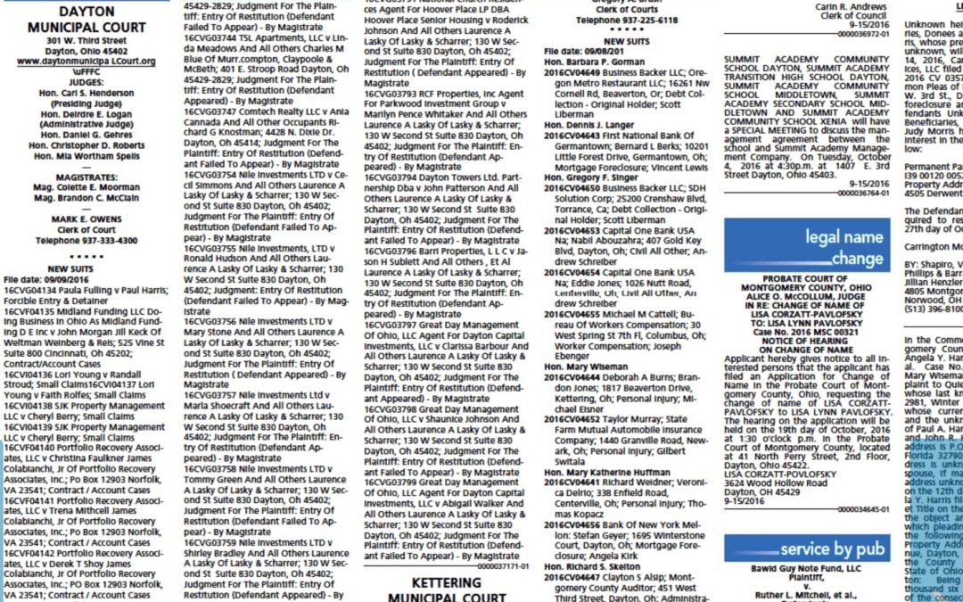 Screen shot of public records notices in Dayton Daily News