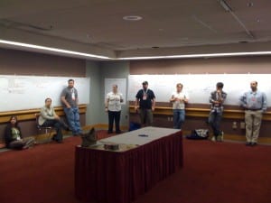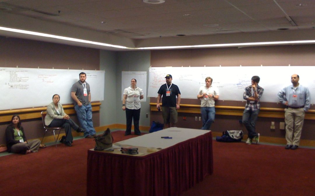 Butcher paper, markers and sticky dots. The same old system to discuss ideas.